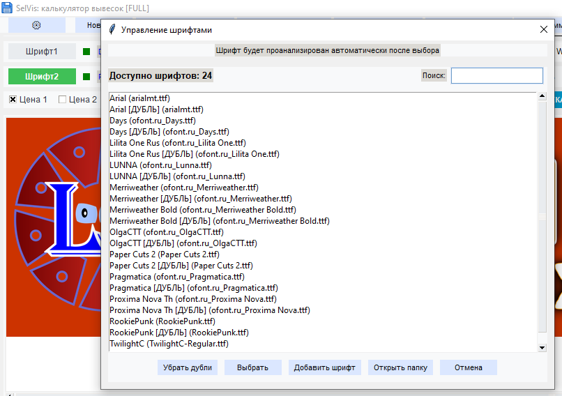 Достаточно просто выбрать нужный шрифт,указать размер высоты и программа сама скажет сколько нужно места для вывески и тут же посчитает ее стоимость!